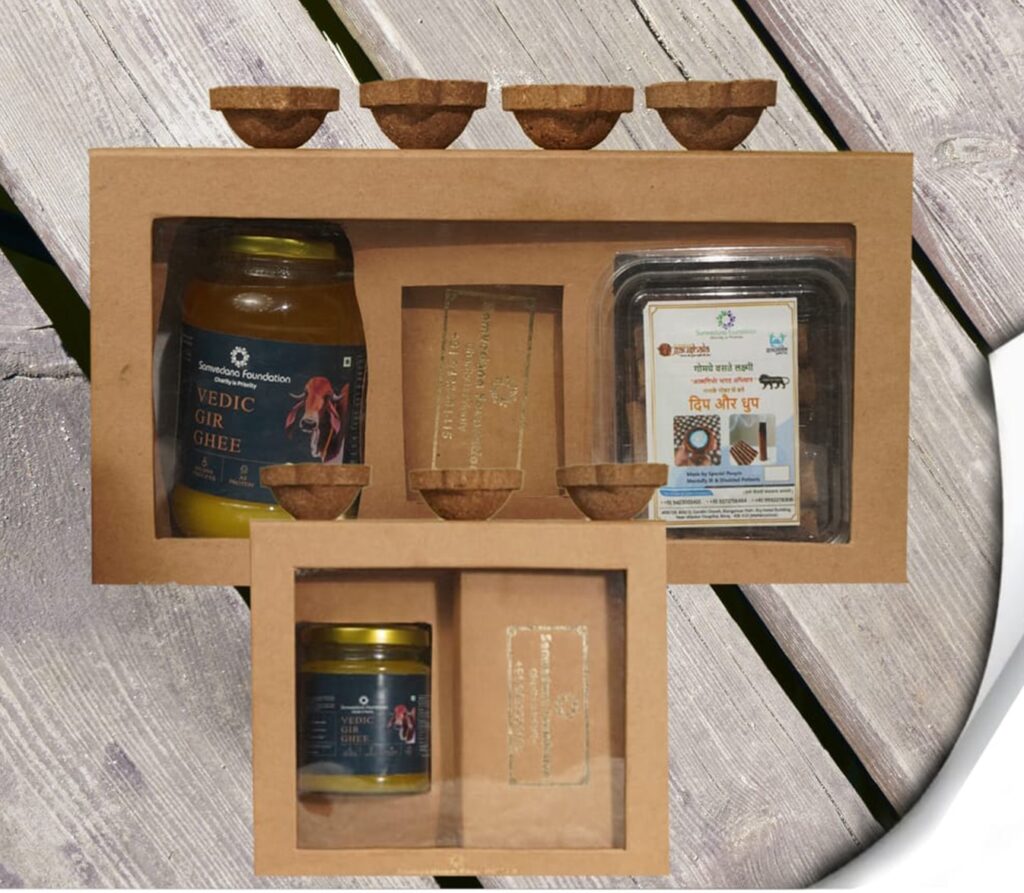 The organization also promotes cow-based products, both nutritious and eco-friendly. Along with traditional dairy products such as ghee, Sanvedana Gaushala produces sustainable items like Gaukashta (cow dung wood), natural incense sticks, clay lamps, and other bio-products. These efforts not only support a sustainable rural economy but also highlight the environmental and health benefits of cow-based resources.